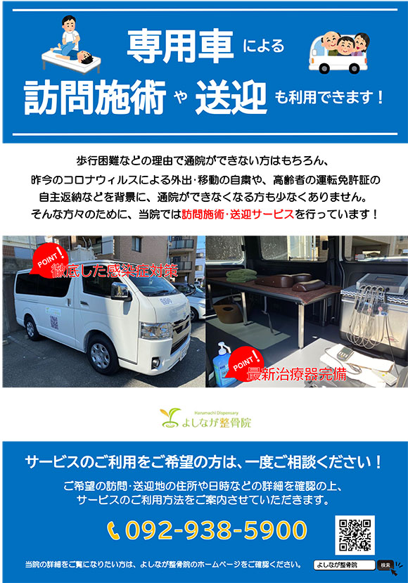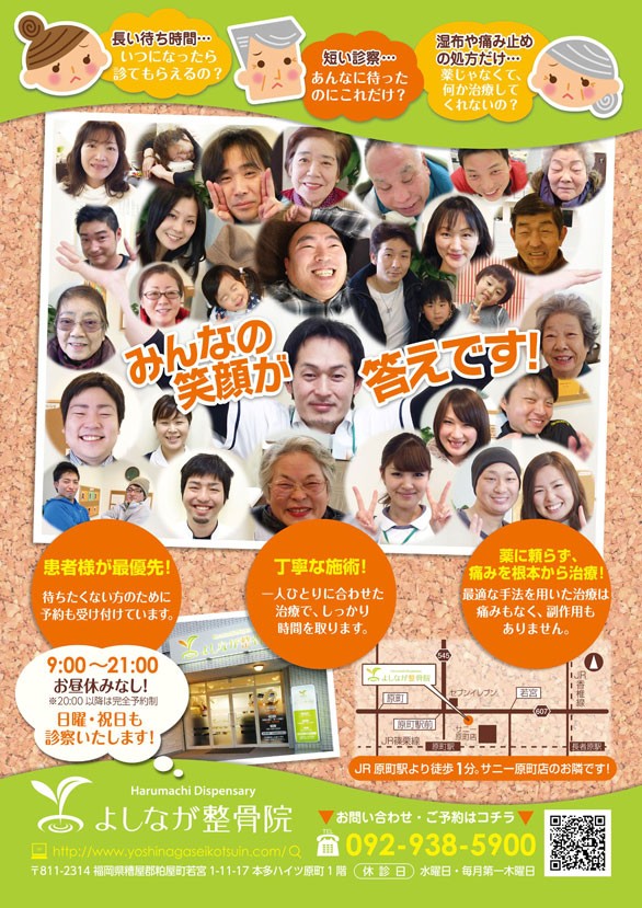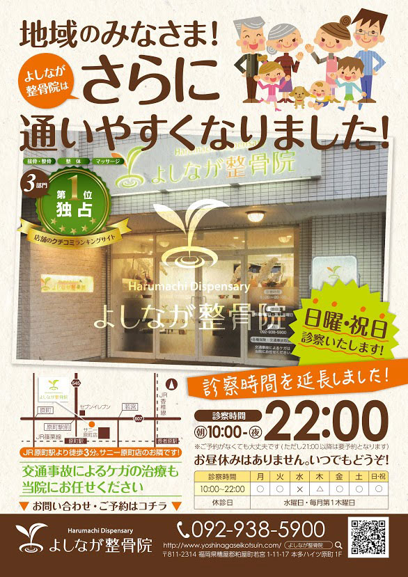 - 前面駐車場(2台)・整骨院裏側駐車場(4台)が満車の場合は、かすやショッピング駐車場(無料・徒歩1分)をご利用ください。